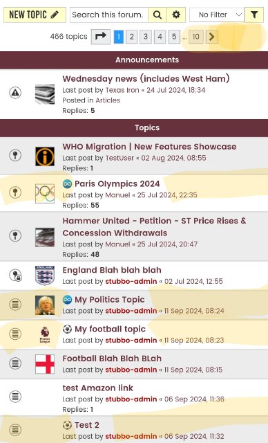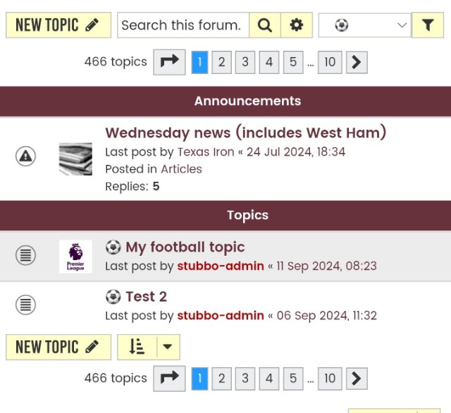 stubbo-admin wrote: 12 Sep 2024, 18:31 I *may* have a solution to filtering to view 'Off Topic', 'Football' or 'All'. Have spent two days developing it with ChatGPT as a 'Partner'.