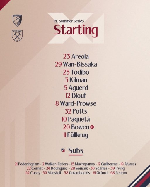 Re: West Ham Vs Bournemouth | Friendly | 3.8.25 19.00 | Match Thread