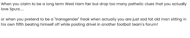 BillyJenningsBoots wrote: ↑01 Jan 2025, 17:46Nutsin wrote: ↑01 Jan 2025, 17:03BillyJenningsBoots wrote: ↑01 Jan 2025, 16:57 And if we are looking for cuntish posts how about this one from 04 Dec 2024 14:07