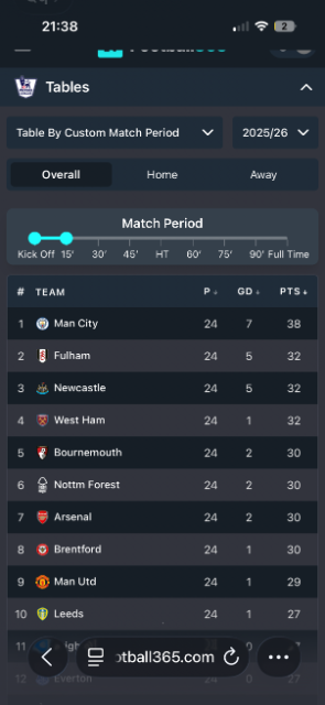 Re: West Ham's league position if the final whistle blew at X minutes...
